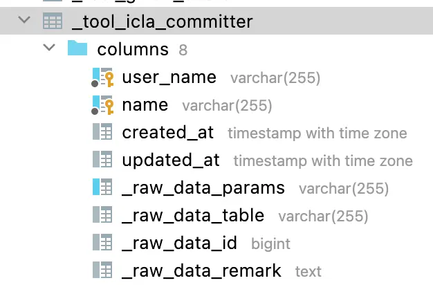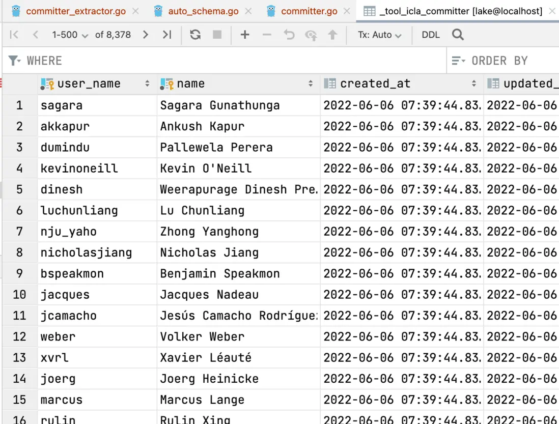 Ok, run the function main once again, then it turned out like this, and we should see some records show up in the table _raw_icla_committer.