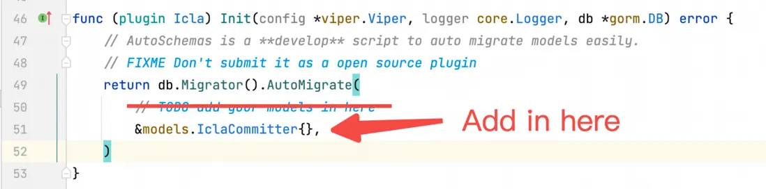 Now Apache DevLake suggests to save data by gorm, so we will create a model by grom and add it into plugin_main.go/AutoSchemas.Up().
