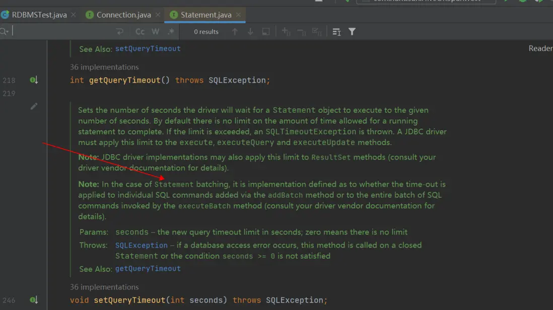 - 在使用 batch 機制時,該超時時間是適用於某個單獨的sql還是該批次所有sql之和,JDBC並沒有統一要求,由具體的數據庫驅動自行實現;