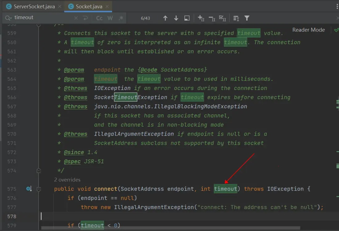 - 套接字的連接超時和讀寫超時,在JAVA源碼層面,分別對應方法 Socket.connect(SocketAddress endpoint, int timeout) 和方法