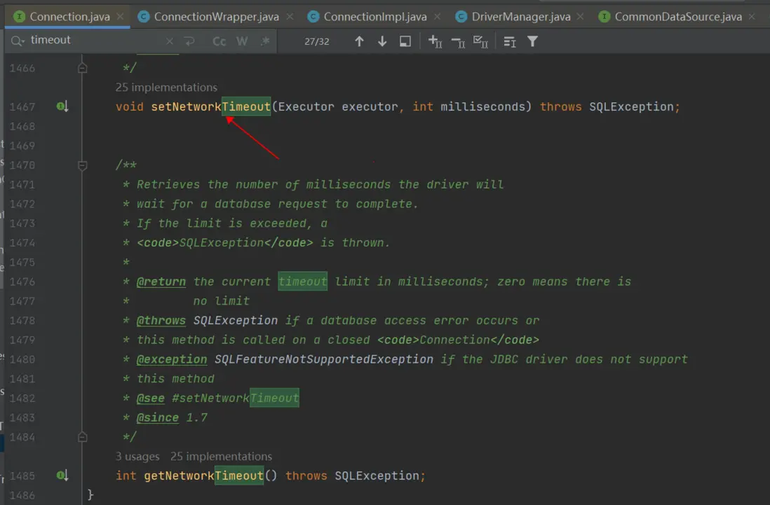JDBC 標準 API 中定義了該超時時間的含義,如 java.sql.Connection#setNetworkTimeout: