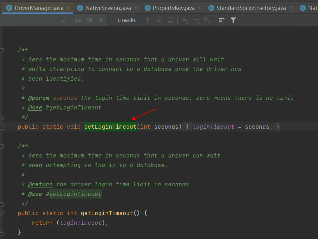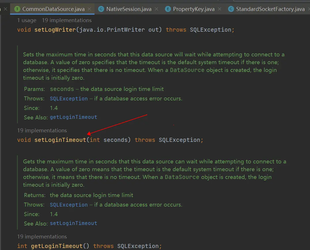 - JDBC 標準 API 中定義了登錄超時的含義,如java.sql.DriverManager#setLoginTimeout,javax.sql.CommonDataSource#setLoginTimeout;