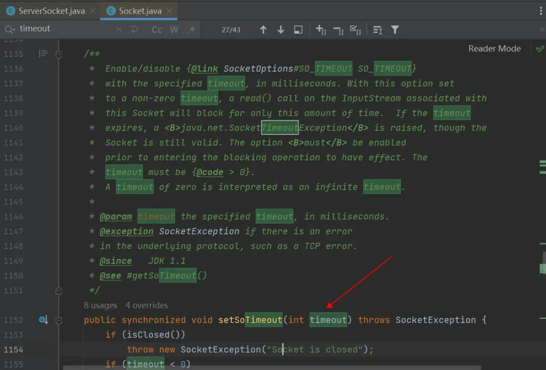 - 套接字連接建立後,對 socket 中數據的讀寫操作都是阻塞的(涉及到 CPU 用户態和內核態的切換以及系統調用),套接字超時即是讀寫 socket 底層數據時的阻塞超時時間;