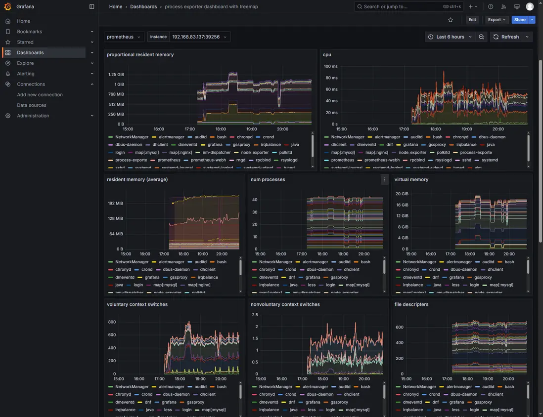 ④ 通過process-exporter實現對系統進程的監控,並通過Grafana進行圖形化展示