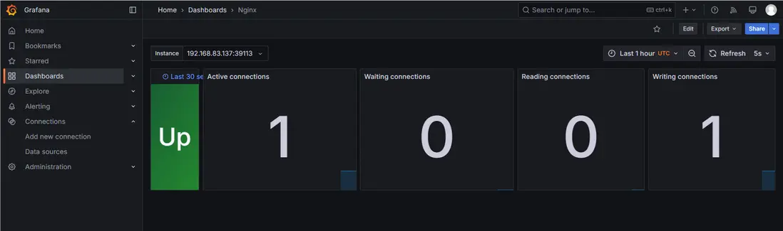 ③ 通過nginx-prometheus-exporter實現對nginx中間件的監控,並通過Grafana進行圖形化展示