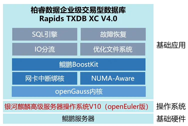 柏睿數據聯合中原鯤鵬生態創新中心,基於鯤鵬硬件、銀河麒麟操作系統V10(openEuler版)、鯤鵬應用使能套件BoostKit等對其產品進行全棧優化,助力柏睿數據在國產數據庫領域更進一步。