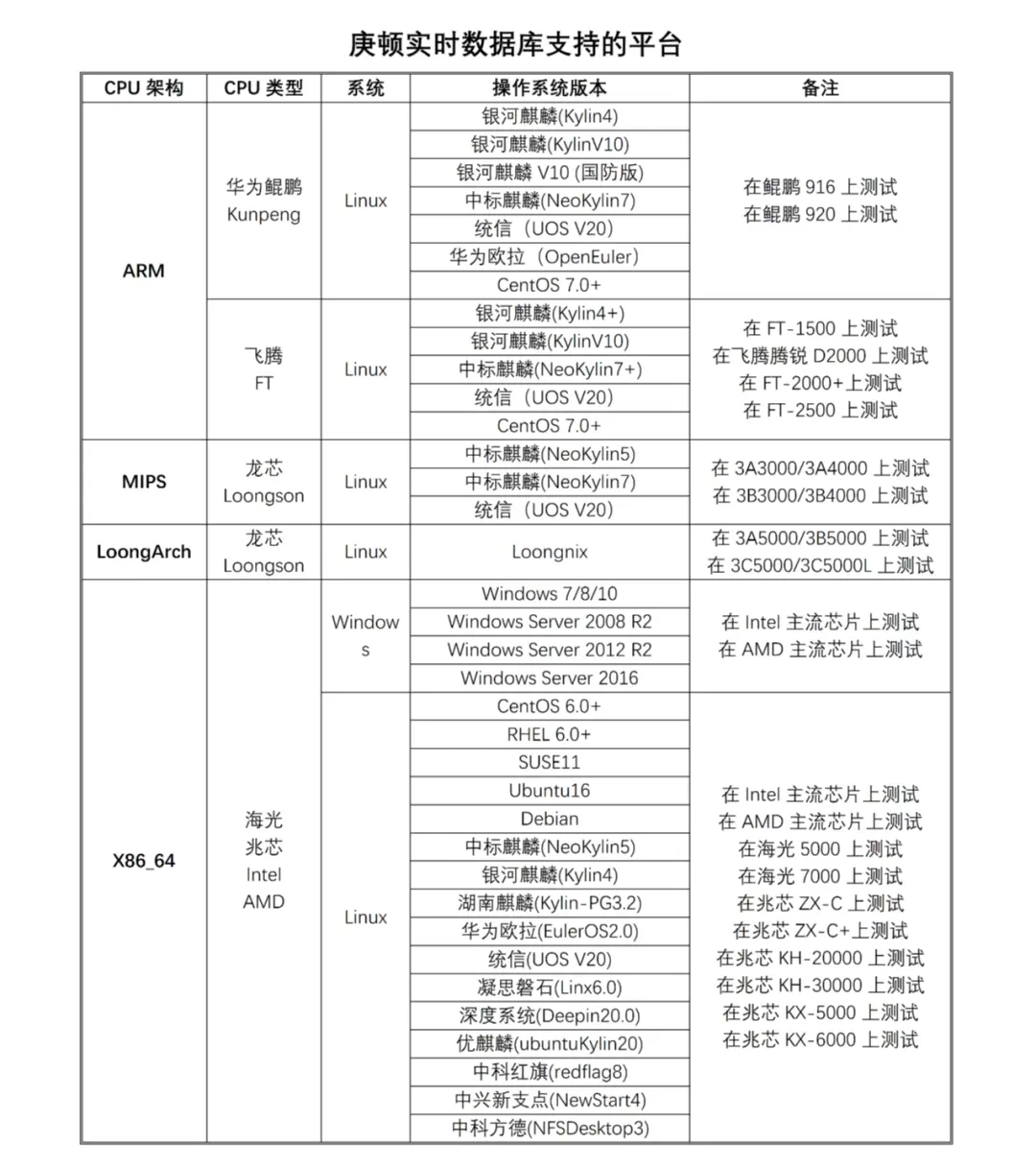 8月14日,近日,庚頓數據自主研發15年的工業核心基礎軟件數據庫產品——庚頓實時數據庫新增龍芯最新LoongArch架構兼容性互認,另外還完成了十多個操作系統版本的兼容互認。截至目前為止,庚頓實時數據庫已經完成三十多個版本操作系統的兼容適配。