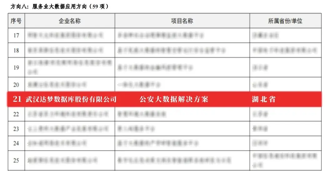 - 達夢公安大數據解決方案成功入選工信部“2022年大數據產業發展試點示範項目”中“服務業大數據應用方向”項目。