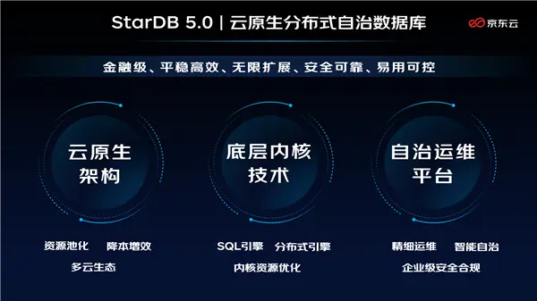 8月3日,京東雲產業融合新品發佈會數據庫專場正式舉辦,發佈了三大數據庫新品,包括全新一代分佈式數據庫StarDB 5.0、數據庫智能管理運維產品DMS和SmartDBA,數據庫產品矩陣再添新成員,陣容更加強大。StarDB 5.0新版本在雲原生架構、自治運維平台和底層內核技術三個方面進行了重大升級,實現了數據庫性能的全面提升。