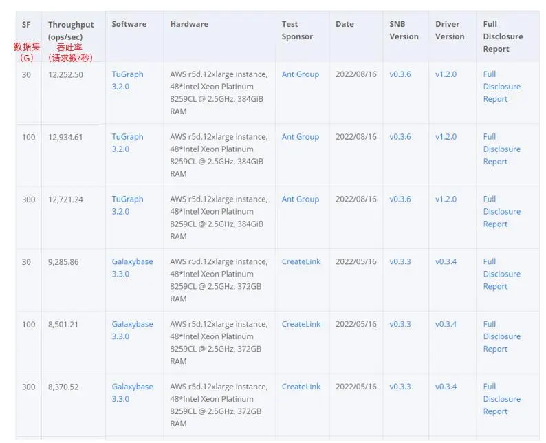 8月24日消息,近日,螞蟻集團自研圖數據庫 TuGraph在 LDBC機構的SNB最新測試中,在不僅通過了事務性和正確性測試,還在吞吐率測試上打破官方審計紀錄,繼2020年之後再次獲得世界第一。這也意味着,在圖數據庫領域,國產圖數據庫性能已經領先行業。