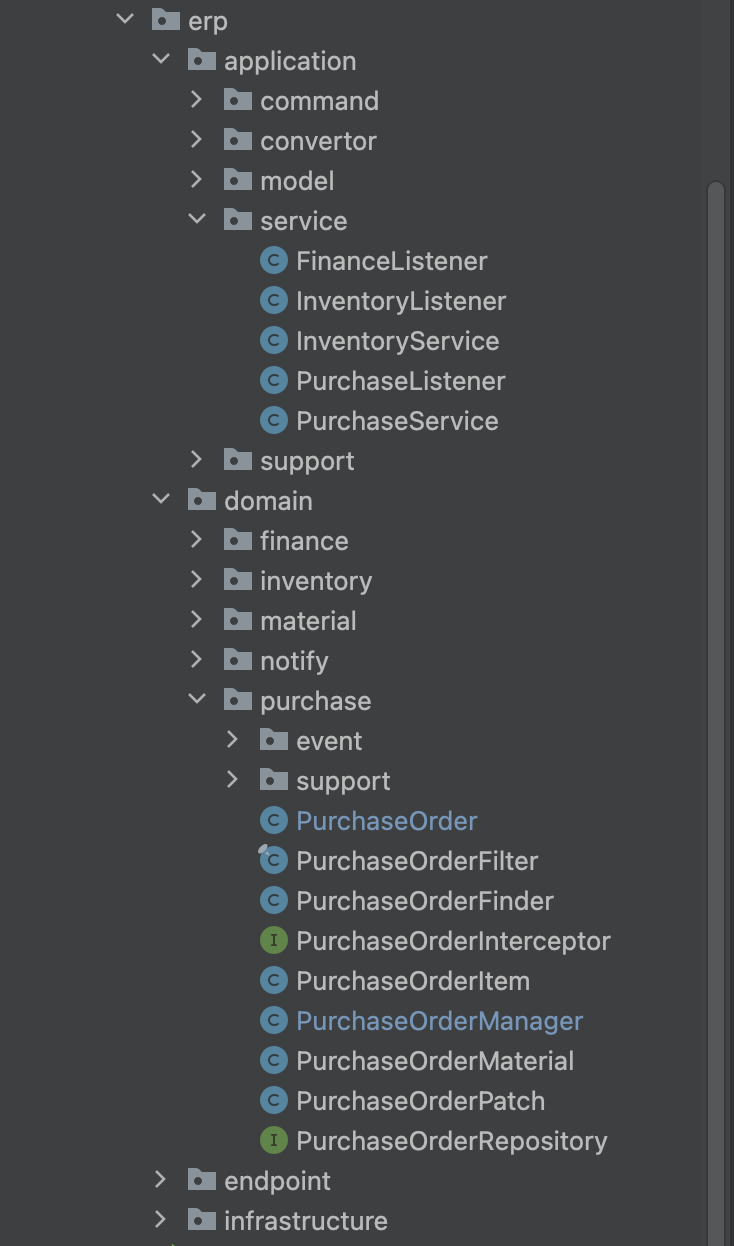 在定義了上述技術手段之後,開始落地實現,首先定義採購單聚合根(只展示部分核心代碼):
