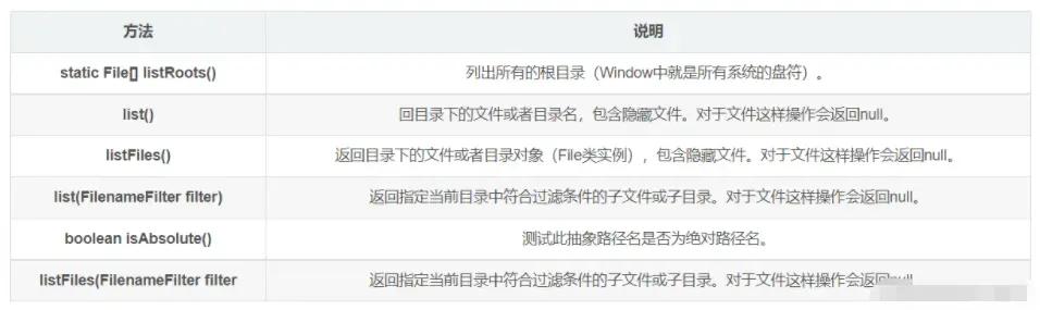File類僅涉及文件的創建、刪除、重命名、修改時間、文件大小等功能。並未涉及寫入或讀取文件的操作。寫入或讀取的操作由I0流完成。·路徑中的每級目錄之間用一個路徑分隔符隔開。