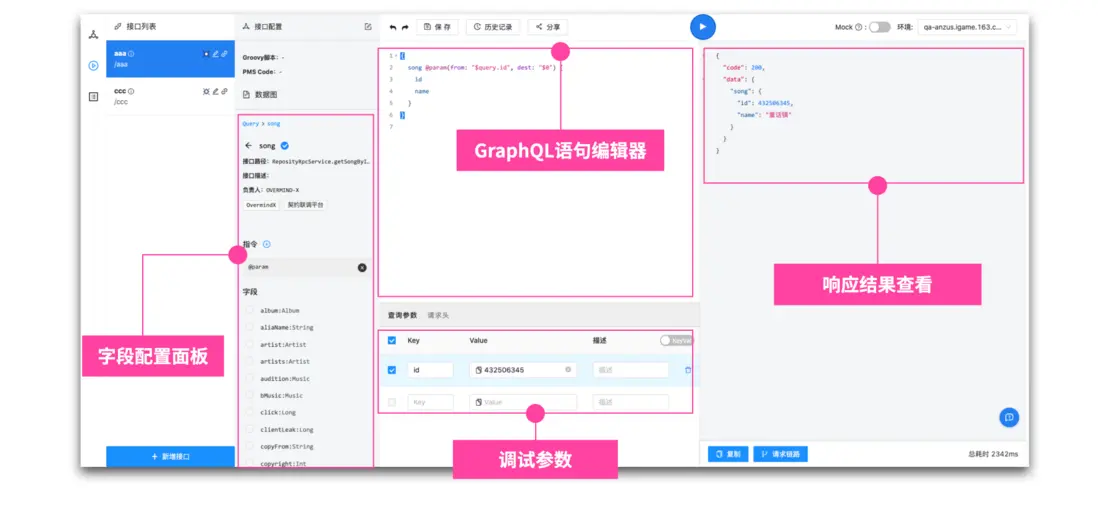 除去低代碼編輯能力外,編輯器還提供了一些輔助功能,這些功能可以讓 GraphQL 接口的開發更加流暢便利,比如: