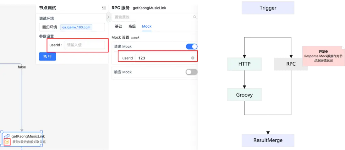 Tango Flow支持Request Mock和Response Mock,Mock數據來自於統一資產平台(OX),數據可以在Tango Flow平台按需進行調整;同時在編排時若某個節點打開了Mock可在編排視圖中會有特殊標記提示流程節點開啓了Mock;
