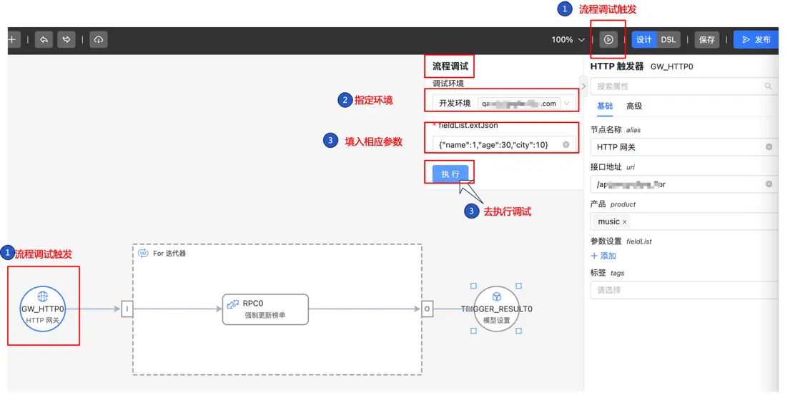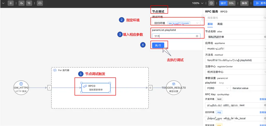 支持整個流程的調試、節點維度調試(RPC、HTTP、Groovy腳本)的調試能力,並且無需發佈,可指定環境、直接測試、調試記錄;