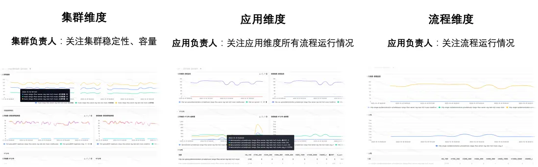 不同維度數據,不同負責人關注信息不一樣,根據訪問分佈、RT訪問分佈,並在流程維度有RT和調用錯誤率的告警;