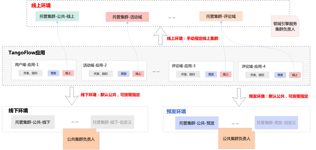 託管集羣是真正的運行TangoFlow 流程的服務,在運行TangoFlow的流程時,需要首先指定運行在哪個託管集羣上,從開發 -> 迴歸 -> 預發 -> 線上,每個都需要制定運行的託管集羣;