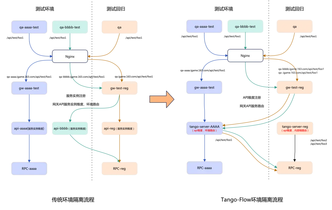 3、Tango Flow環境隔離: 網關負責API路由;Tango Flow引擎負責環境路由