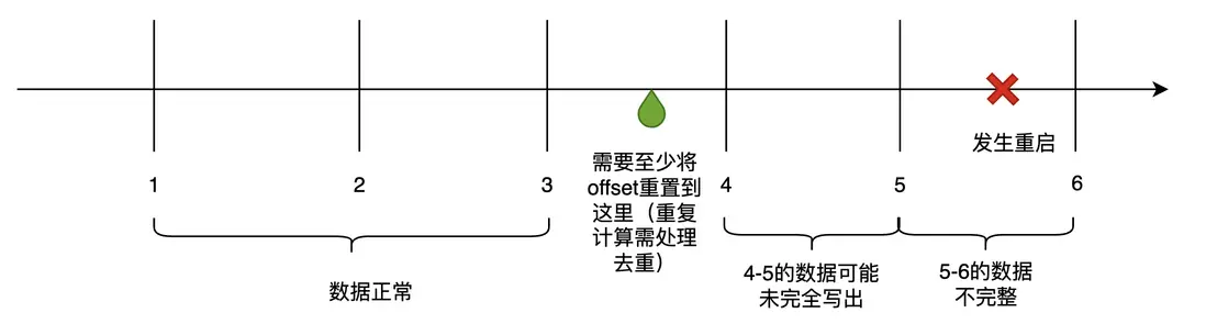 當Flink任務有需求變更、或底層資源導致的Failover,會發生任務重啓,導致聚合停止。重新拉起服務時,從Kafka當前位點繼續消費,無法完整拿到當前這分鐘的完整數據,上一分鐘的數據也可能未完全寫出,故會造成數據丟失和錯誤。