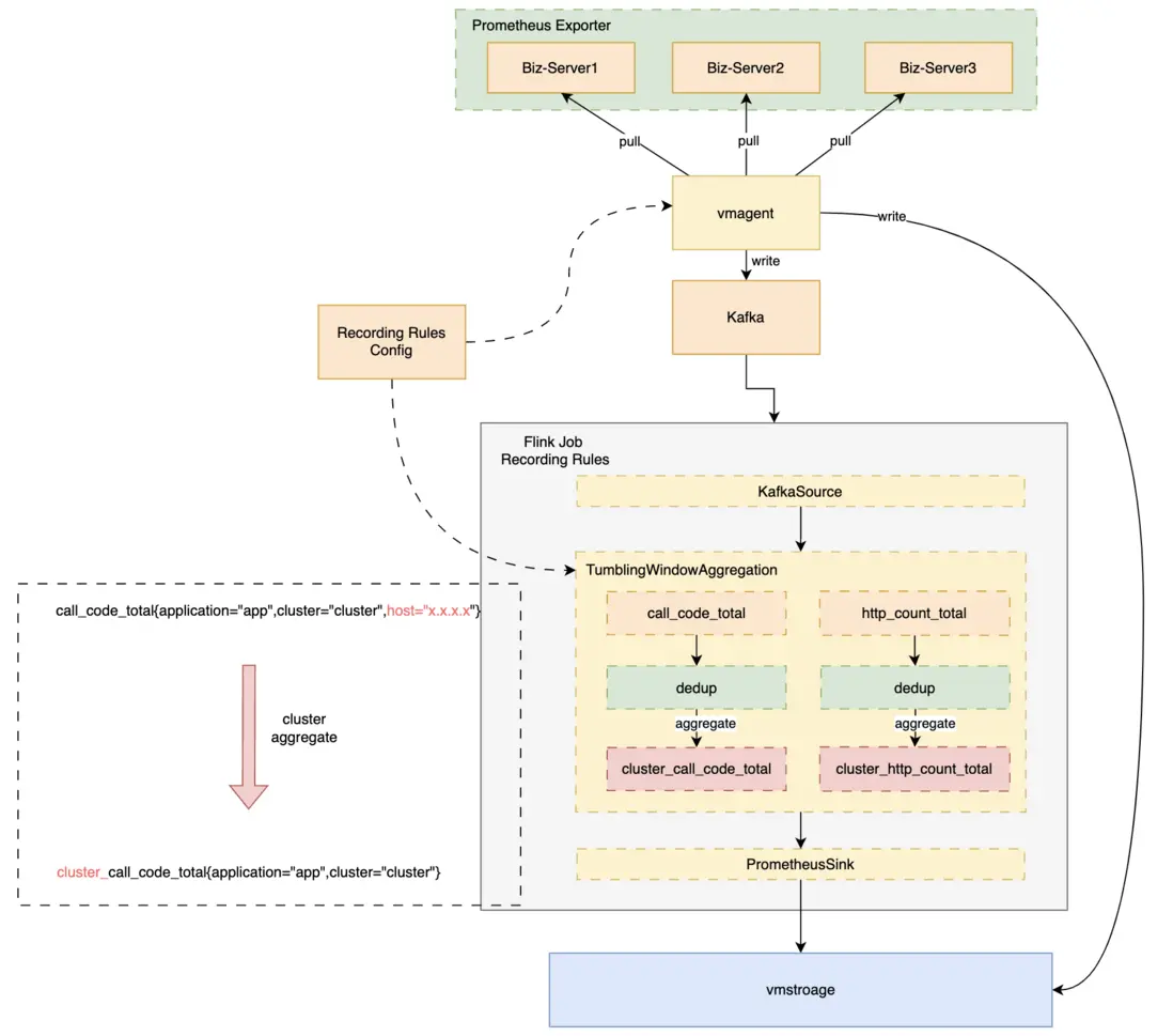 - Recording Rules:自研的Flink任務,負責Metric數據的流式預聚合;