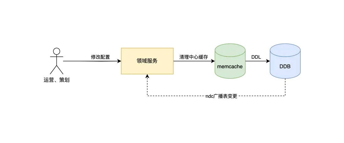 首先我們決定採用的是訂閲數據庫表變更 binlog 廣播消息的方案,當相關表發生變更後,通知所有相關領域服務,然後清理本地緩存。該種方案在實際使用一段時間後,