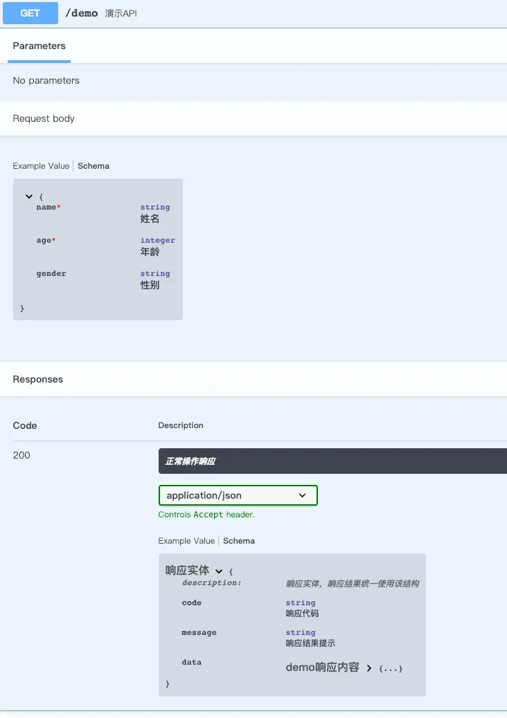 * description="demo響應內容描述"