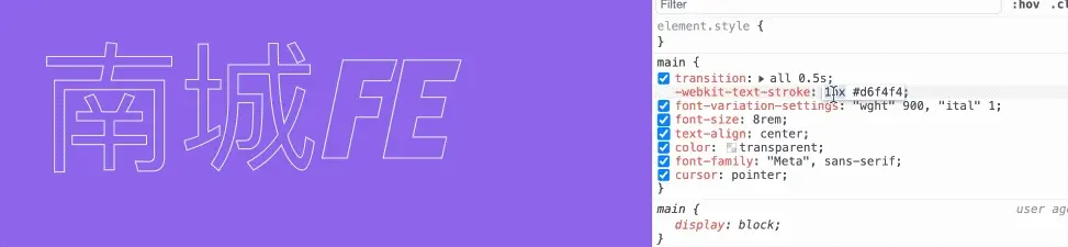 請看以下在瀏覽器中調試-webkit-text-stroke的效果。