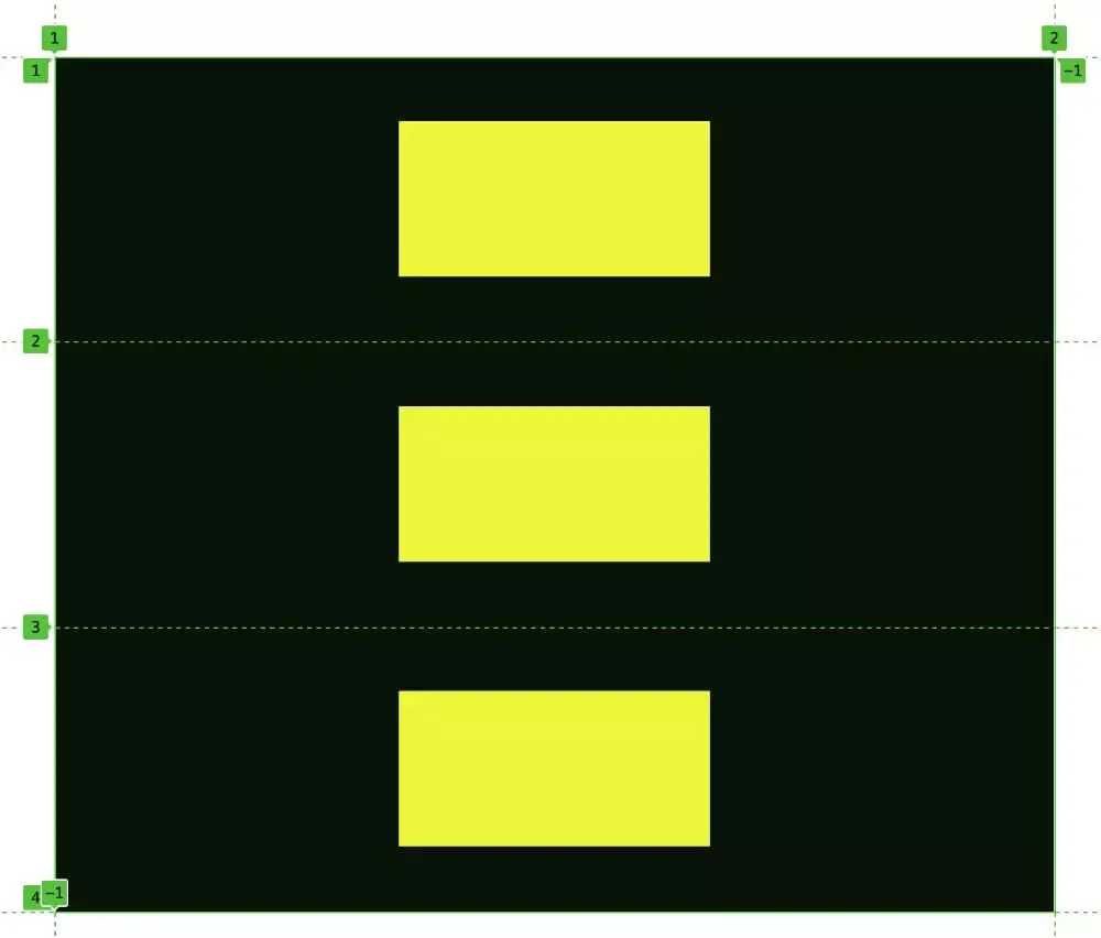 我們可以基於初始代碼添加更多的div元素,看看會發生什麼。結果是每個div將在其網格單元格內水平和垂直居中,如下圖所示(通過瀏覽器的網格檢查器)。