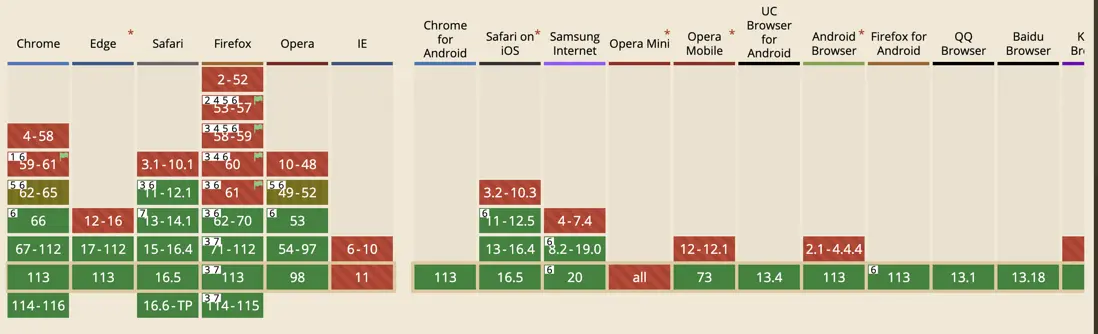 可變字體瀏覽器兼容情況,可以看到基本的瀏覽器都已經支持。