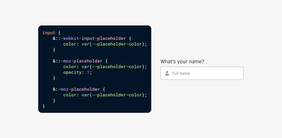 一種常見的情況是對輸入的佔位符進行樣式設置。問題是每個瀏覽器都有自己的前綴。