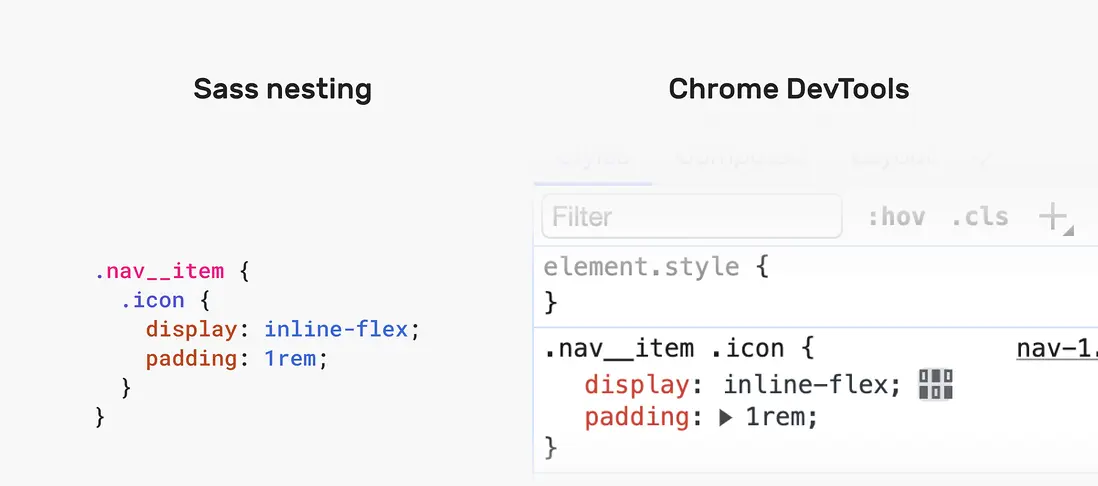 請看下面的例子。我們有一個圖標嵌套在選擇器.nav__item中。