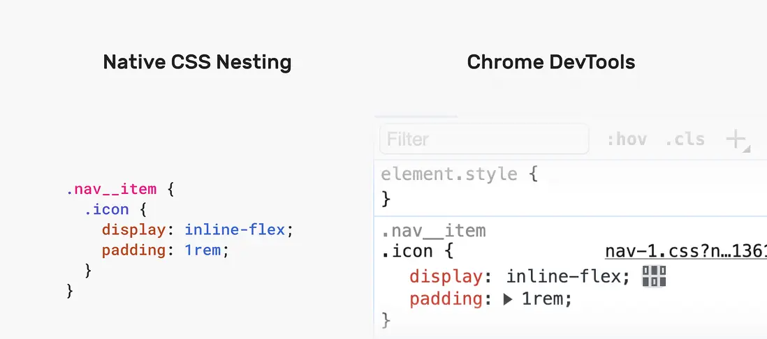 使用原生CSS嵌套,相同的CSS將按原樣工作。這裏有一個圖,顯示了原生CSS嵌套和瀏覽器DevTools之間的比較。