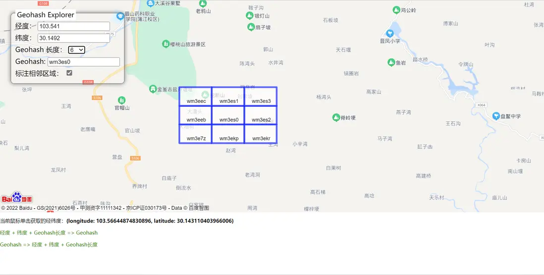 自己造的百度地圖 geohash 可視化工具主要參考了 https://www.movable-type.co.u... 的設計和網頁代碼,主要功能有: