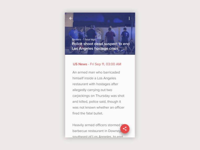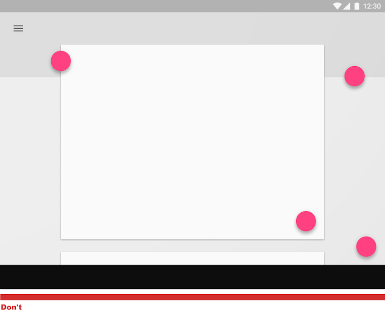 The design of the floating action button hinges on the premise that users will perform a certain action most of the time. You can make this “hero” action even more heroic by reinforcing the sense that it is a core use case of your app. For example, a music app might have a floating action button that represents “play.”