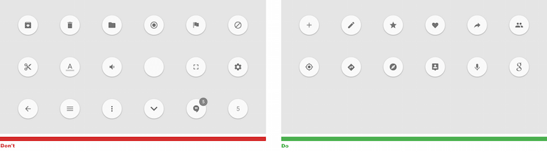 - It is also icon-only navigation. By design, the floating action button is a circle containing an icon. It’s an icon-only button, with no room for text labels. The problem is that icons are incredibly hard to understand because they’re so open to interpretation. Even a simple action icon like the pencil in the example below can mean different things in different apps.