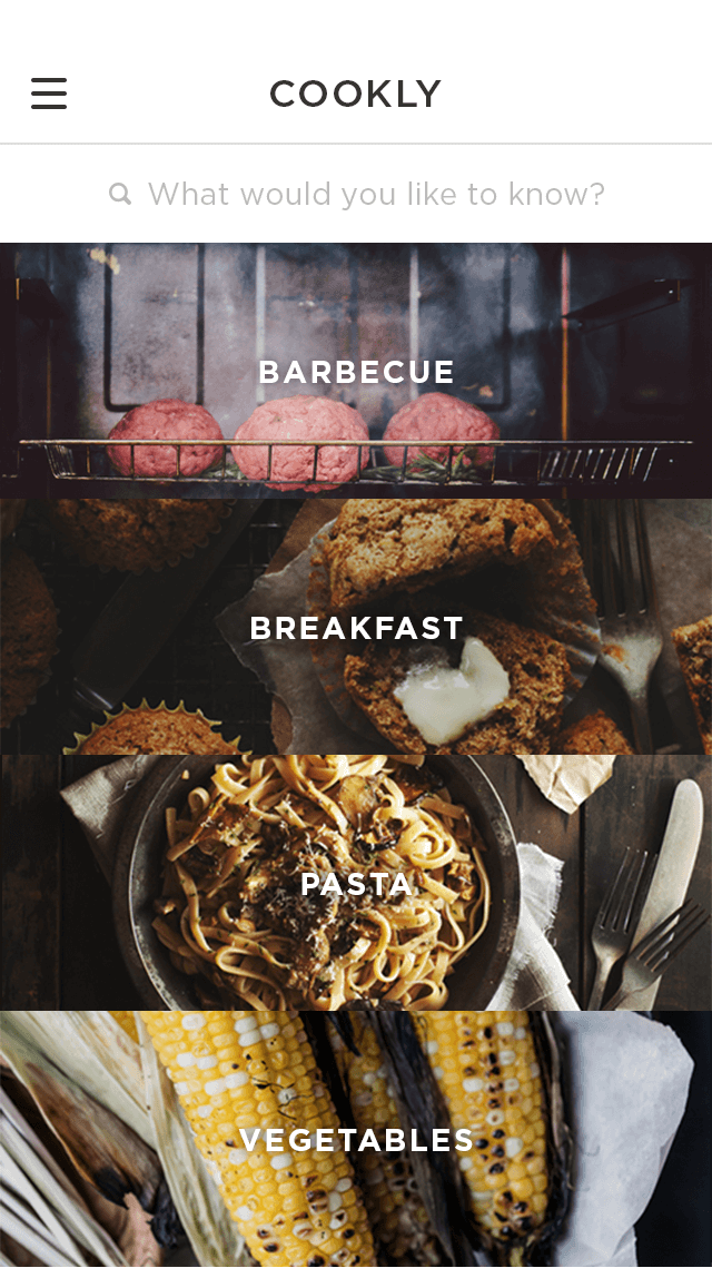 While with other patterns mentioned in this article, you’d be struggling to minimize the space that the navigation systems take up, the full-screen pattern takes the exact opposite approach. This navigation approach usually devotes the home page exclusively to navigation. Users incrementally tap or swipe to reveal additional menu options as they scroll up and down.