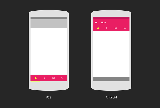 - The location and logic of the tab bar options on iOS and Android are different. Platforms have different rules and guidelines for UI and usability, and you have to take them into consideration when designing a tab bar for a particular platform. Tabs appear at the top of the screen on Android and at the bottom of the screen on iOS. This happens presumably because Android’s control bar at the bottom is hardware. Please note that this rule doesn’t apply to mobile websites, because the experience with them should be consistent regardless of the device used to browse them (Android or iOS).