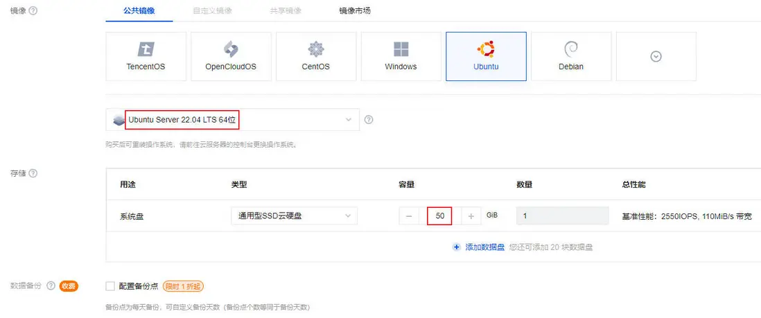 雲服務器存儲包括系統盤和數據盤,系統盤是必須要選擇的,數據盤可選可不選,50GB高性能雲硬盤足夠應對建站需求,數據盤可後期掛載。