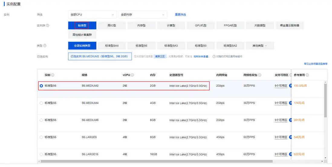 由於我們是用來搭建網站,網站流量不多,選擇標準型雲服務器即可。