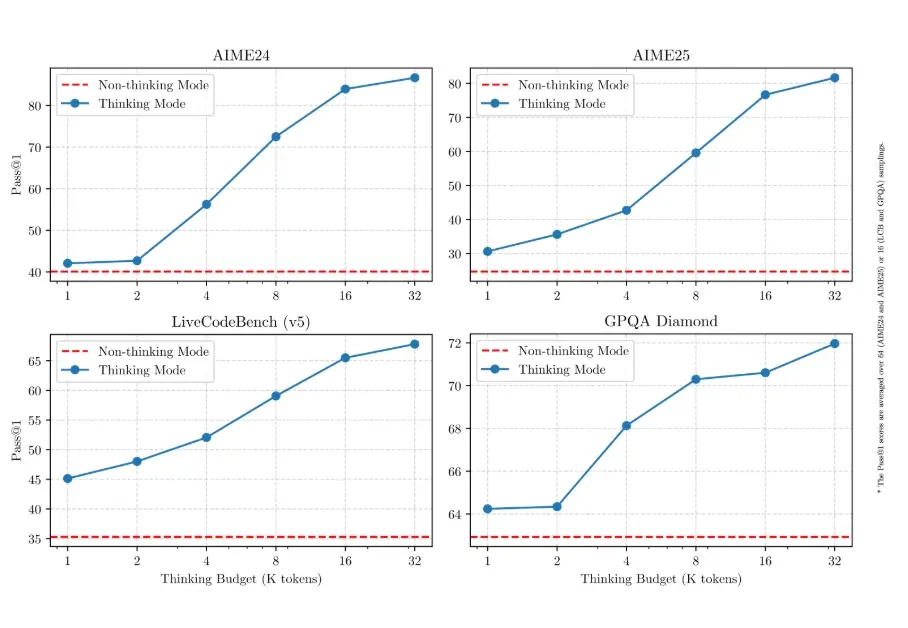 這説明 Qwen3 既能在簡單問題上快思考,秒出答案;又能在複雜問題上慢思考,展開多步推理和深入分析。