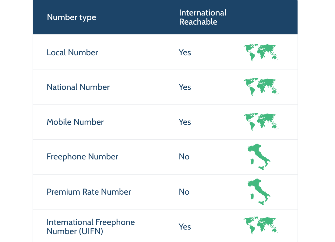 Not all number types can be called from everywhere. Obviously, you need to make sure your phone number is reachable by your target audience.