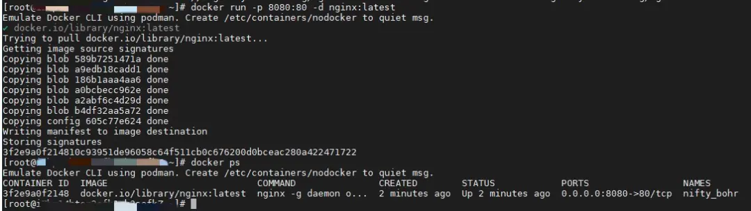 接下來,從鏡像倉庫中拉取可用的 nginx 服務器鏡像並啓動,並映射為實例上的服務端口。