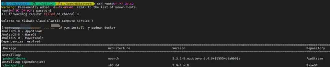 首先,在上面申請的試用實例中安裝 docker 工具的軟件包。