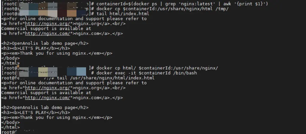 docker cp /tmp/html $containerId:/usr/share/nginx/