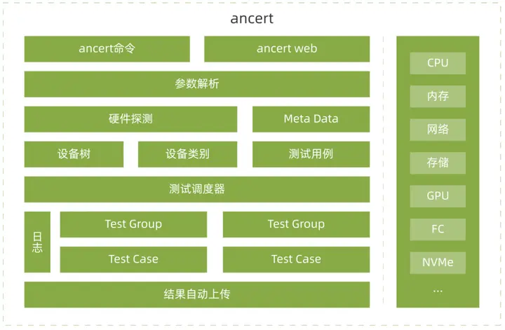 Ancert 是龍蜥操作系統硬件兼容性測試套件,致力於驗證硬件設備集成商等廠商發佈的整機服務器和各種板卡外設與龍蜥操作系統 不同版本之間的兼容性,推動社區發行版在各種硬件設備上的適配,圍繞龍蜥操作系統建立完善的硬件生態。