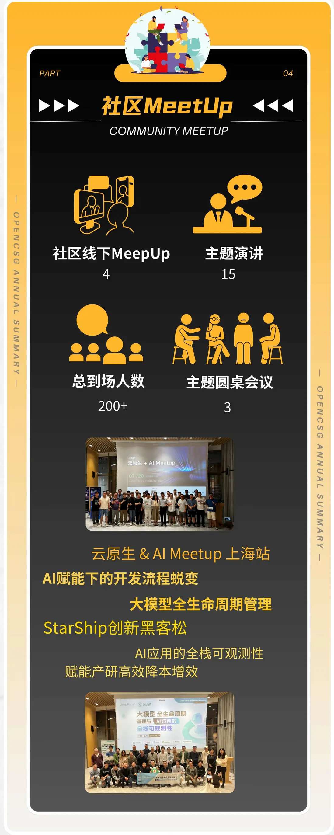 2024年是OpencsG 社區高速成長的一年。從技術創新到用户生態,從開源產品發佈到社區活動,社區影響力日益擴大,技術成果不斷涌現,開源生態持續繁榮。這些成績離不開社區每一位夥伴的支持與貢獻,感謝每一位社區夥伴的信任與陪伴!