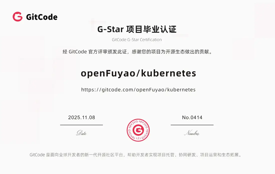 近日,openFuyao開源社區兩大核心項目【openFuyao/ai-inference-integration】與【openFuyao/kubernetes】成功斬獲GitCode官方G-Star項目認證,入選GitCode G-Star計劃優質項目。此次雙項目同步“畢業”,不僅是對openFuyao技術實力與社區運營能力的權威認可,更標誌着社區已形成“貢獻者激勵-技術迭代-場景落地”的良性閉環。獲得認證的項目將納入“G-Star Landscape生態版圖”,同時意味着openFuyao與GitCode達成深度合作,雙方將攜手為開源軟件生態建設注入新活力。