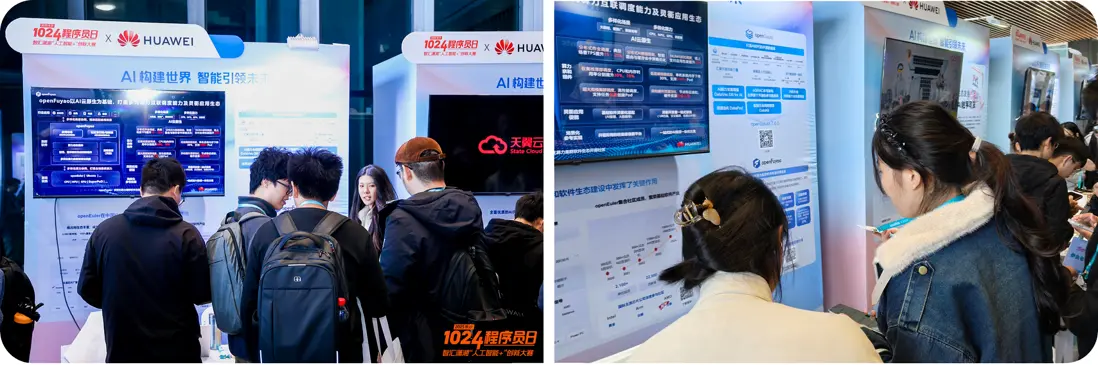中國 1024 程序員節在長沙、武漢雙城聯辦,openFuyao 社區於兩地設立展台,與產學研領域的廣大開發者分享社區最新技術演進成果。展台吸引了知名企業、院校科研專家、學者及開發者逾千人駐足交流,共同探討促進有效算力極致釋放的實踐成果與未來規劃。