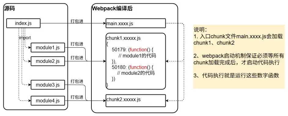 這裏需要對webpack打包產物有一定了解,才能透徹瞭解這個過程,簡要説明如下: