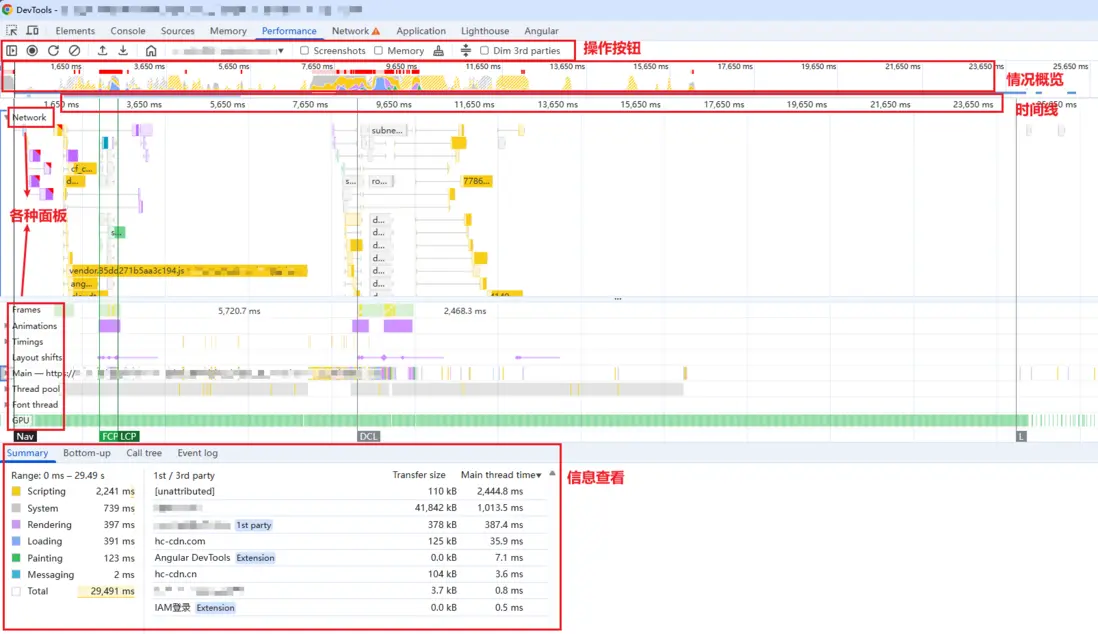 在做前端頁面性能優化時,Performance面板是一個必不可少的工具。這個工具比較強大,既可以從全局視角分析整個網頁加載情況,又可以從代碼細節,挖掘某個具體環節的性能情況。但這個工具的結果可能讓人看着感覺難以理解,因為它本質上是將各種運行信息呈現給我們,而不是直接告訴我們問題在哪兒。我們需要將各類信息:瀏覽器加載過程、框架打包(webpack)、代碼編譯(tsc、babel)、代碼執行(angular)等,綜合起來並跟Performance面板上的環節一一對應上,然後才能分析出問題。